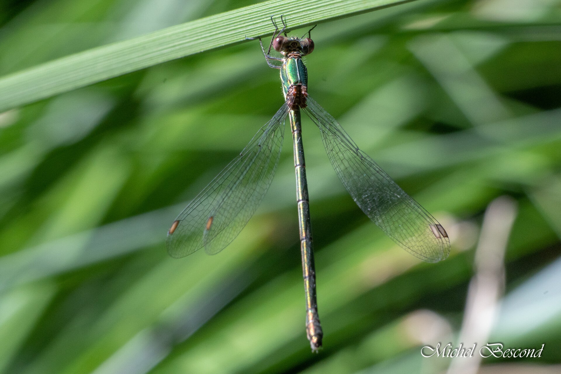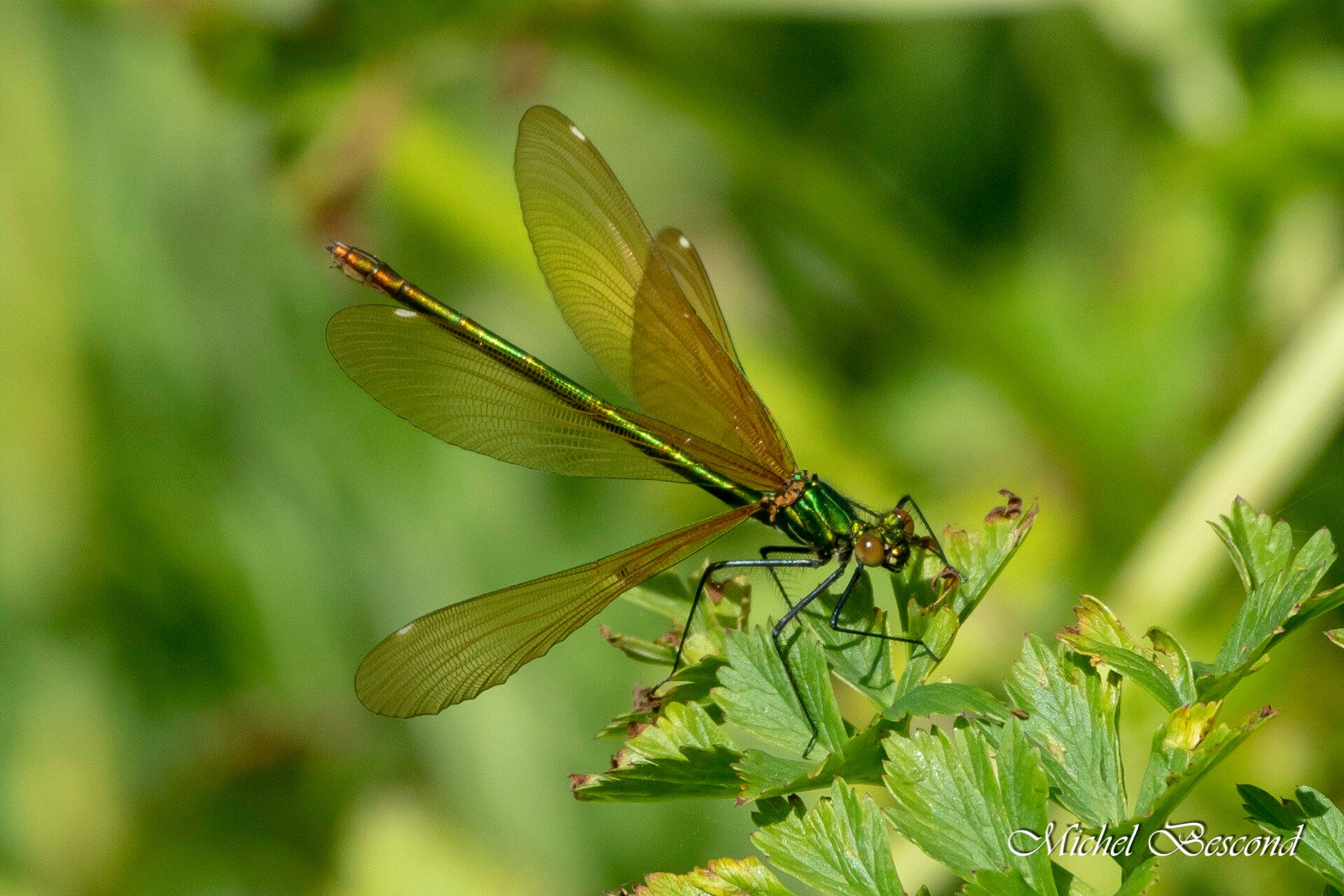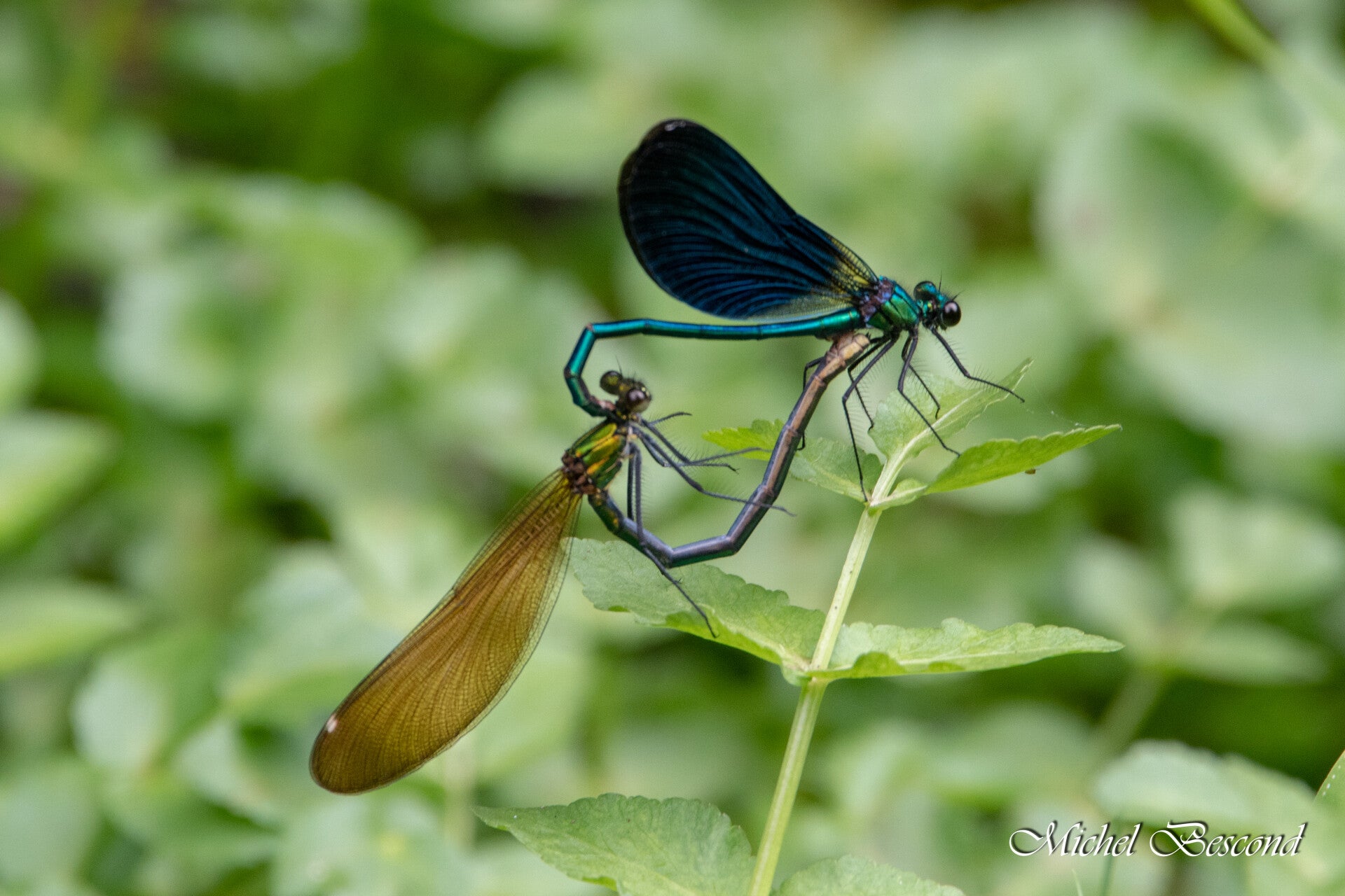 La différence entre une Demoiselle et une Libellule ? : la libellule est plus grande , quand elle se pose ses ailes restent écartées contrairement a la demoiselle qui les replient le long de son corps .