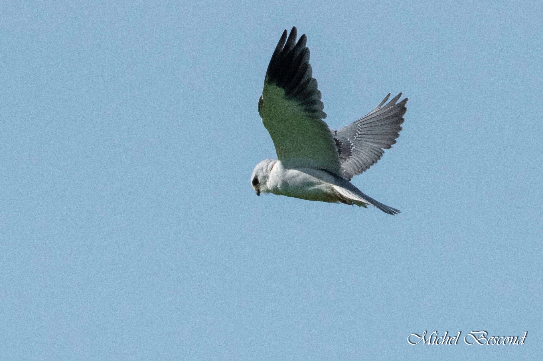 Nouvellement arrivé en Bretagne il ressemble a un faucon crécerelle tant par la taille que par le vol . Son plumage est blanc, noir et gris, ses yeux sont rouge vif. L’élanion vient des savanes et semi-déserts d’Afrique du Nord. il a niché pour la première fois en France dans les Landes en 1990. En vingt ans, sa population a été multipliée par cinquante En 2023 on compte de 500 à 1 000 couples d’élanions blancs en France.