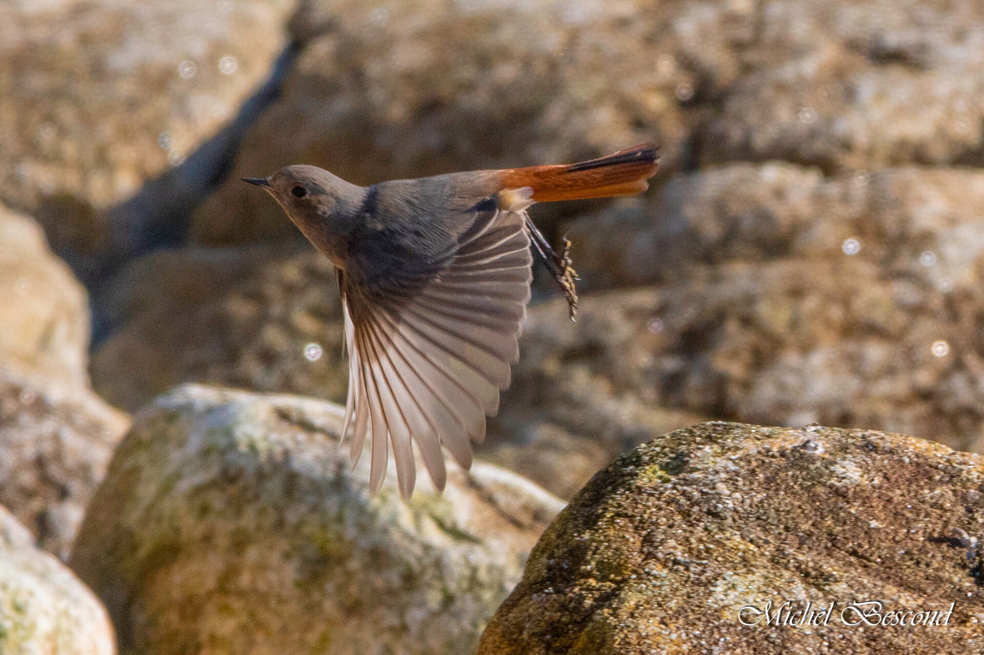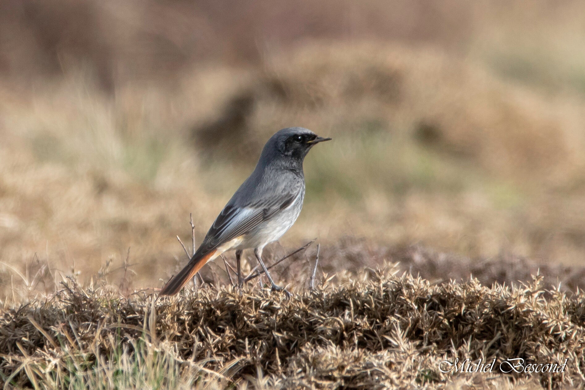 Le rouge-queue noir est un petit passereau partiellement migrateur. On peut l'observer dans le Cap-Sizun en mars, avril et octobre, novembre. Il se nourrit principalement d'insectes qu il chasse au vol , parfois de petites baies. Il aime les habitats naturels de rochers, falaises et éboulis ou il se perche en hauteur . Mesurant environ 14 cm, il est plutôt discret. Dans son plumage sombre, ses pattes sont noires, son bec est fin, sa queue orange sera visible lors de son envol . Le mâle porte un plumage plus sombre avec un masque noir ; la femelle a un cercle oculaire blanc. Il se dispute souvent le territoire de chasse avec les pipits, bergeronnettes, rougegorges et autres insectivores .
